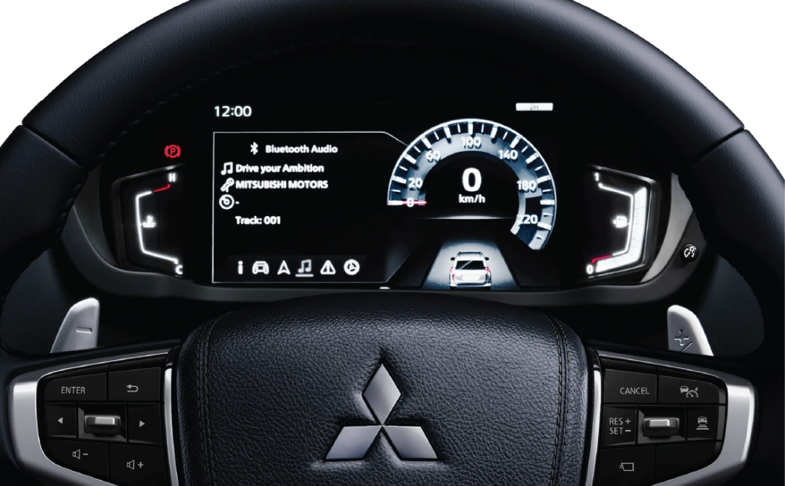 Pertama dari Mitsubishi, layar berukuran besar 8-inch color LCD meter yang memudahkan Anda melihat berbagai informasi sekaligus memberi kesan mewah dan elegan di kabin depan.